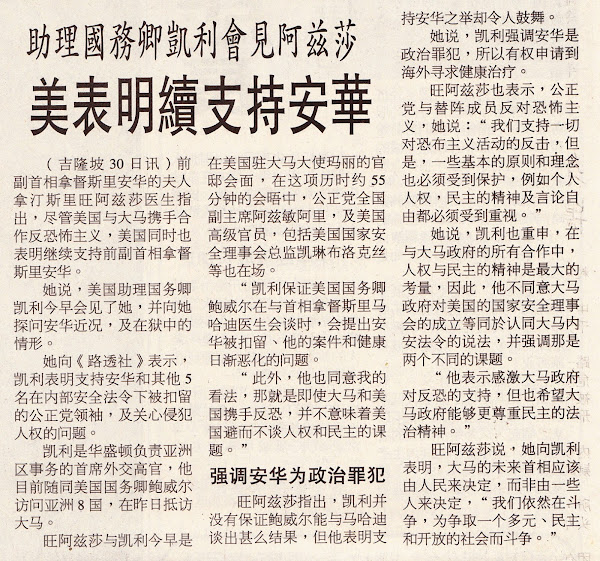 第三章 第卄二回:文告 2001年 马 哈 迪 应 该 诚 邀 安 华 同 志 商
