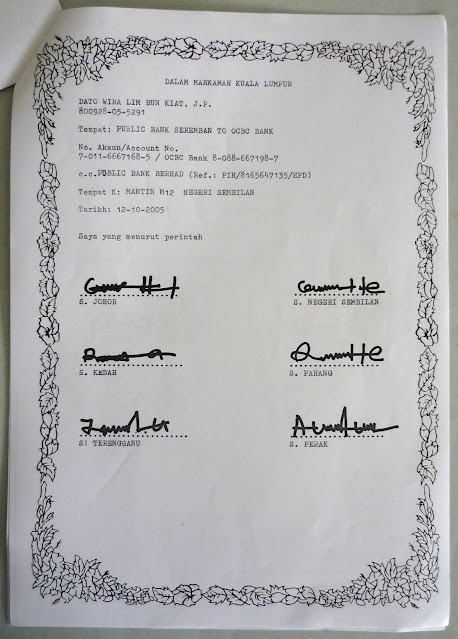 故事便由此开始,期间涉及4百万令吉的期仄,248张银行进出账收据,1张来自柔州苏丹过账的收据,11封来柔州苏丹的函件,2 封来自首相阿都拉的信,1封13州苏丹的连署信,3封来自吉隆坡高庭及大众银行的催账单。