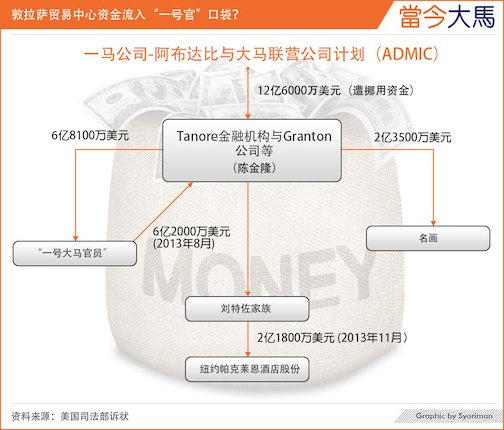政府甚至发出“支持信”,担保这笔债券,但根据美国司法部诉状,一马公司获得债券收益后,并未按计划行事,把收益投入到阿布达比大马投资公司(ADMIC),而是把逾15亿美元转入三家位于加勒比海群岛的公司,再把12亿6000万钱转回Tanore金融机构等。