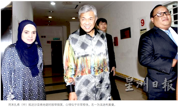 阿末扎希与纳吉在庭内握手后,感谢后者特此前来给予支持;纳吉在第九地庭内与他闲聊20分钟左右后,在开庭前便已离开。