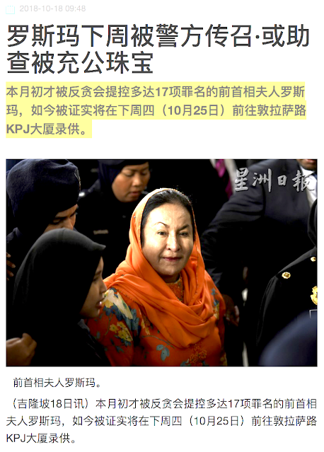 据消息指出,罗斯玛原定周四(25日)被传召,但她以夫婿纳吉将在明日面控为由,向警方申请将录供延迟到周五(26日)。