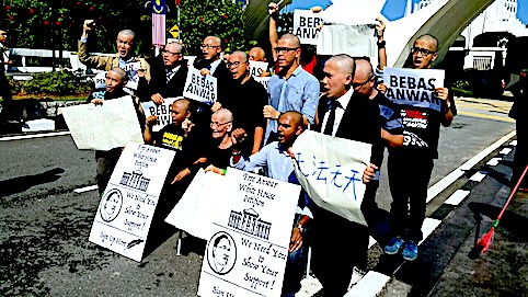 国会反对党领袖安华因肛交罪入狱5年,无法出席昨日起举行的国会会议。不过,在国会下议院今早开会之前,两批民联领袖分别在国会大厦门口处示威,其中一批更以落发方式抗议司法不公。