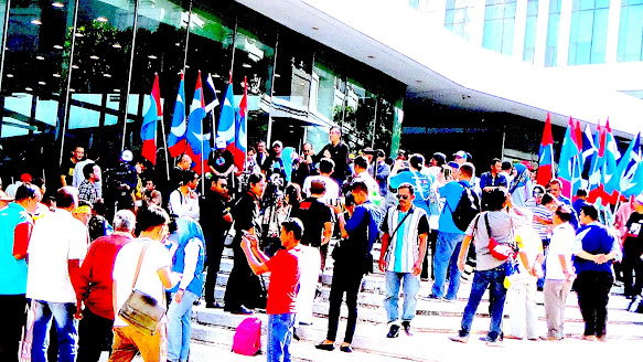 公正党顾问拿督斯里安华第二宗肛交案罪成的联邦法院司法检讨今日进行陈词,希盟领袖和安华支持者出现在法庭给予支持。