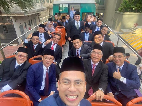 (吉隆坡26日讯)公正党的39名议员浩浩荡盪地搭乘双层开篷巴士抵达国家皇宫